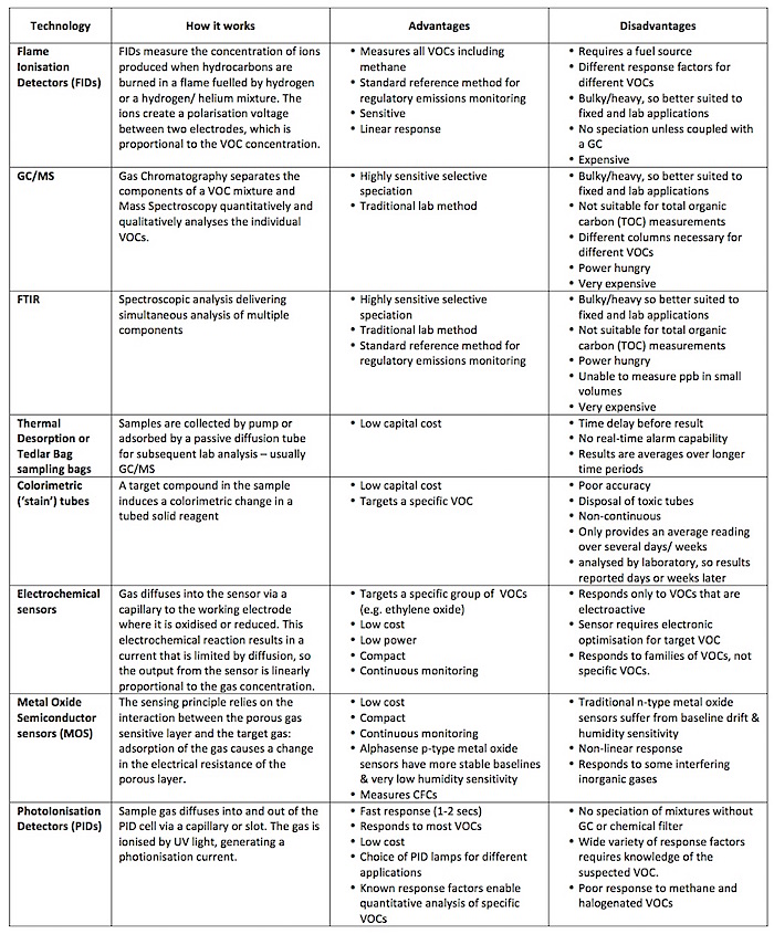 These properties unfortunately vary widely between the many thousands of different VOCs, so in the following article Arthur Burnley, Sales and Marketing Director of sensor manufacturer Alphasense, explains the factors affecting the choice of sensor – for both end-users and manufacturers of monitoring instruments. Arthur also discusses the key questions that must be addressed, but first it is important to be aware of the technologies currently available.